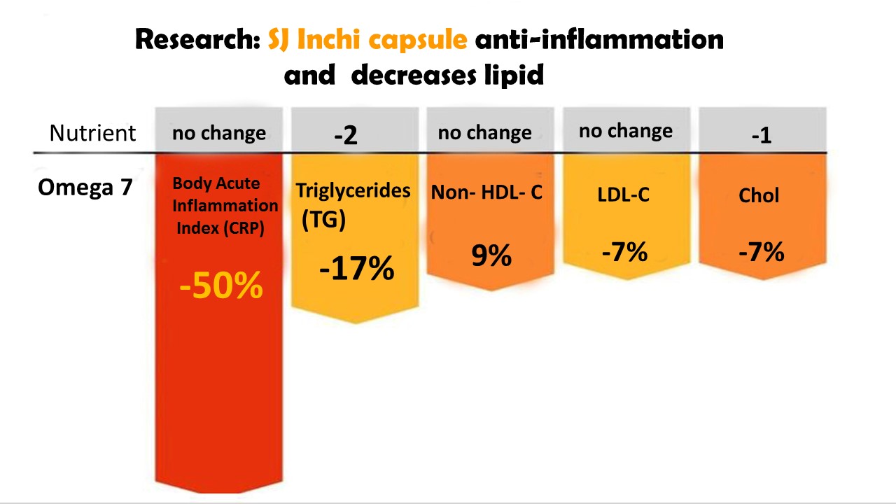 The Central Research Center of Japan Suisan Co., Ltd. conducted animal experiments on diabetic mice and found that after taking Omega-7, the secretion of ghrelin in the mice decreased. This reduction in ghrelin led to a decrease in hunger and an increase in satiety. As a result, the mice consumed less food, and their body weight decreased significantly. Omega-7 in SJ Inchi also effectively reduced fat accumulation in liver cells, promoted the burning of stubborn fat cells, and improved obesity and fatty liver conditions . Studies suggest that regular intake of Omega-7 can effectively address the "three hypers," promote weight loss, and assist in managing diabetes. What's surprising to scientists is that while Omega-3 requires a daily intake of 1.2 to 2.7 grams for effective anti-inflammation, Omega-7 achieves considerable effects with a daily dose of less than 250 mg. Therefore, Omega-7 is considered superior in terms of "anti-inflammation" !