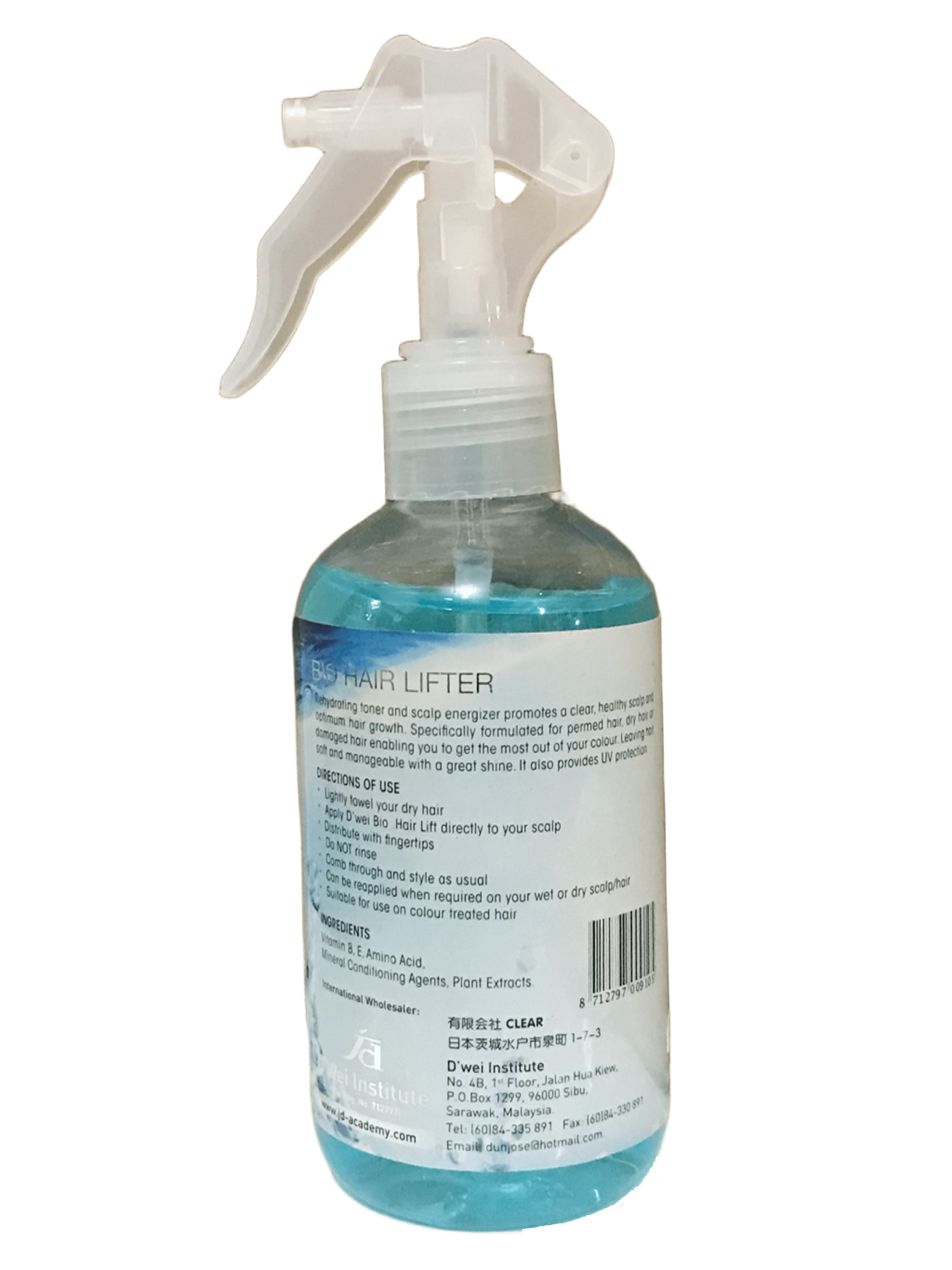 洗发后,将 D'Wei Bio Hair Lifter 喷到头发需要提拉的地方,效果非常棒。 您可以将它喷在潮湿或干燥的头发上。