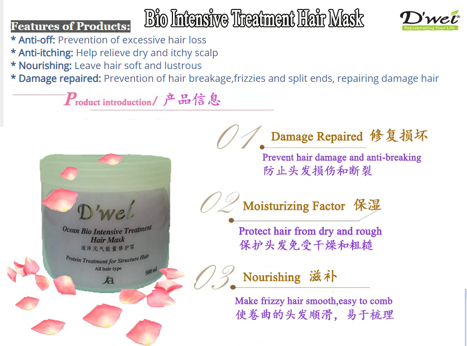 您的頭髮是否需要比護髮素或潤髮膏更密集的護理? D'wei Bio Intensive Treatment Hair Mask 蘊含海洋礦物質和離子元素,是您日常護髮的完美補充。得益於其高濃度的滋養成分,可針對特定問題,恢復秀髮的活力和美麗。它能深入滲透到髮絲,強韌滋養秀發,促進再生,並撫平髮絲表面。最終,秀髮將變得柔順亮澤,更能抵禦傷害。